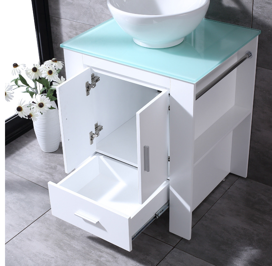 24" Modern Bathroom Vanity Plywood Cabinet Ceramic Vessel Sink Faucet Drain Set