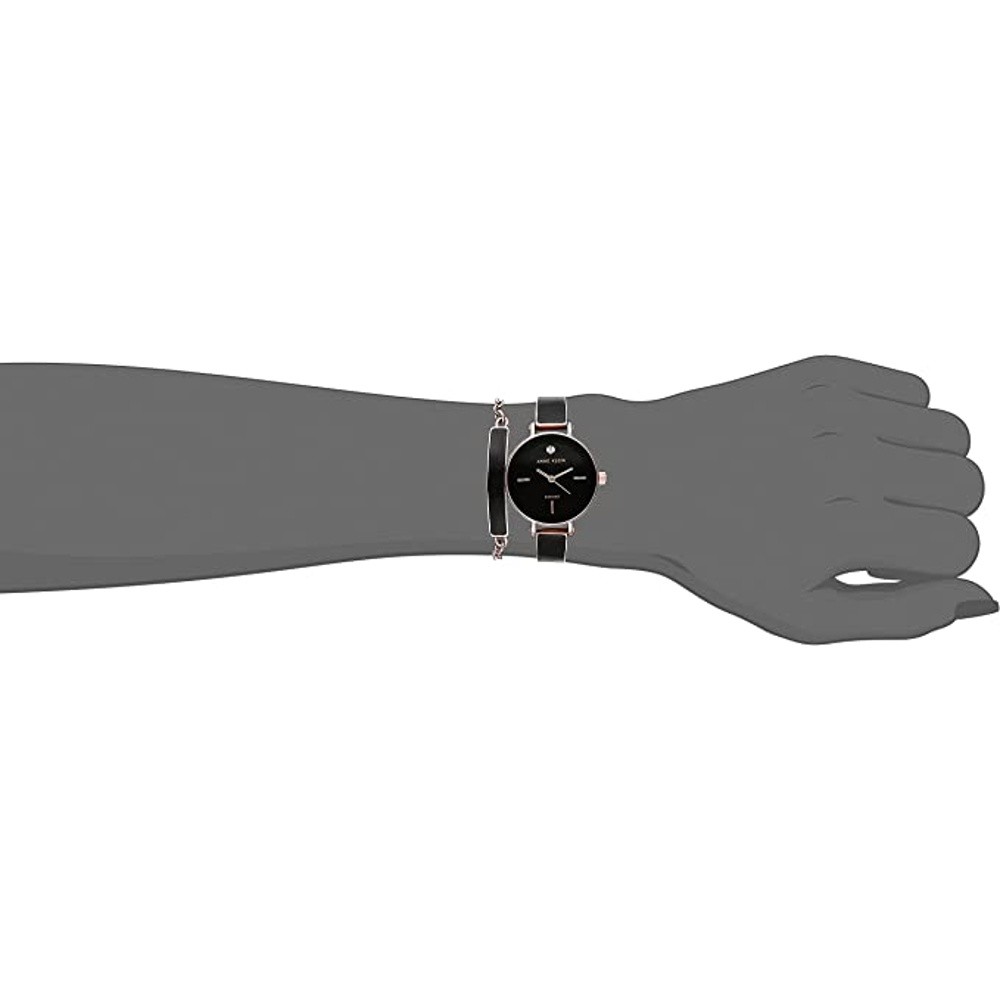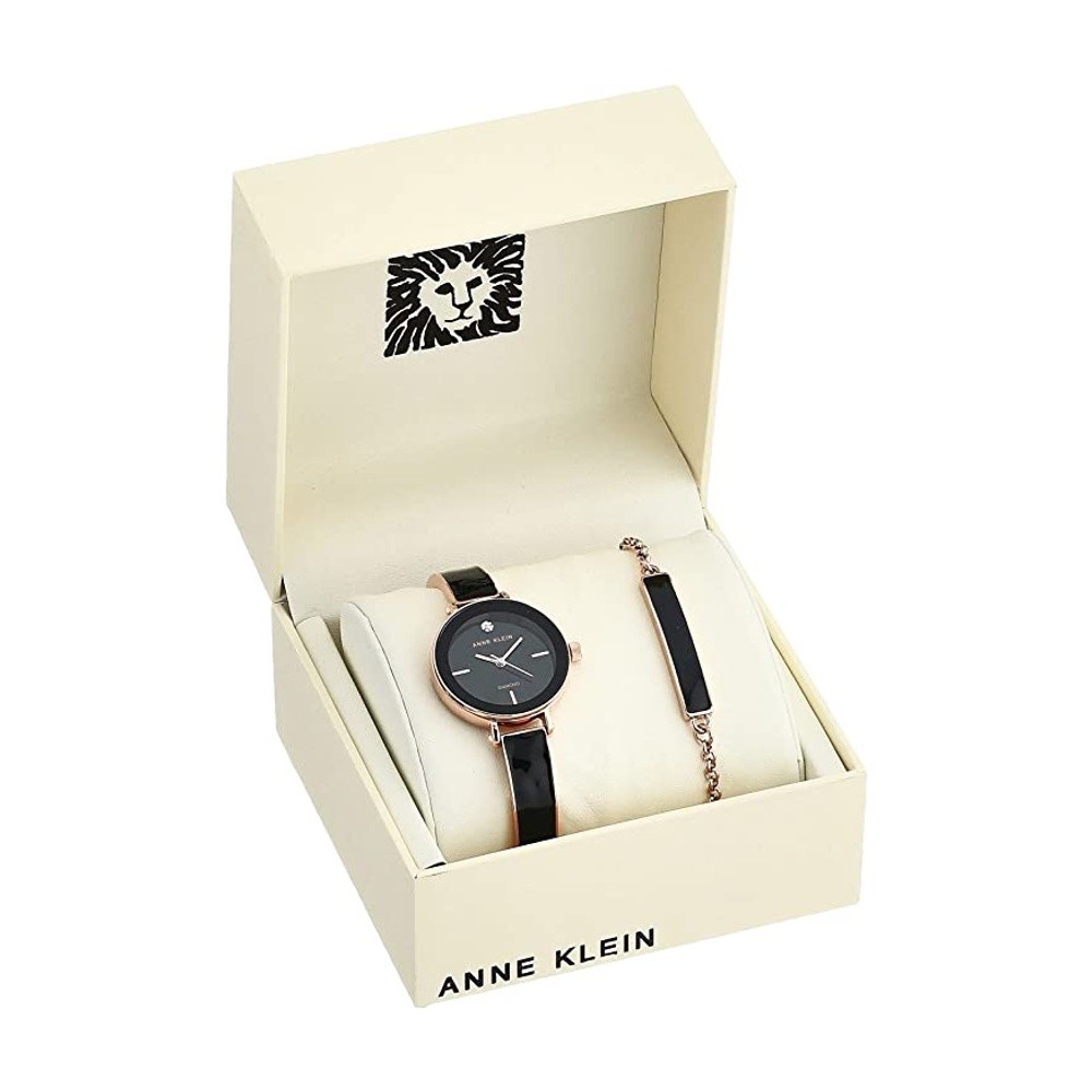 Anne Klein AK/3620BKST นาฬิกาข้อมือผู้หญิง สีดำ/โรสโกลด์ (แบบBoxset สร้อยข้อมือ)