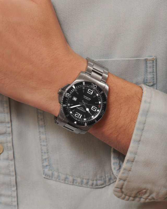 HydroConquest is inspired by water sports, and its bold design is unique. Waterproof to 30 bar (300 meters), equipped with one-way rotating bezel, screw-in crown and bottom to ensure stable performance at all times.
