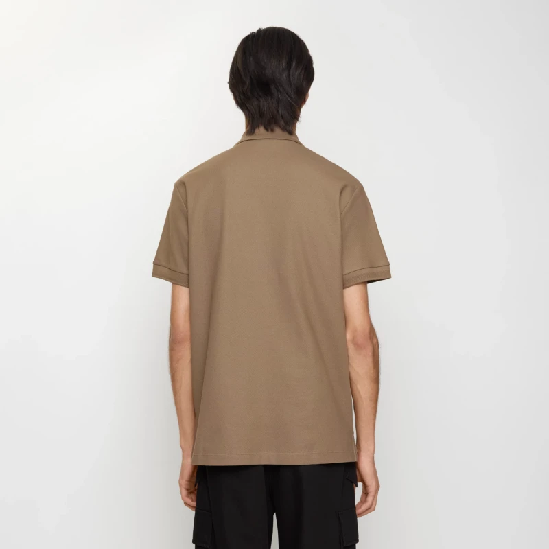 This polo shirt is crafted from a lightweight cotton pique mesh fabric, adorned with tonal Equestrian Knight's Logo (EKD) embroidery. It features a Burberry check lining at the placket, presented in a signature classic beige, creating a slim fit.