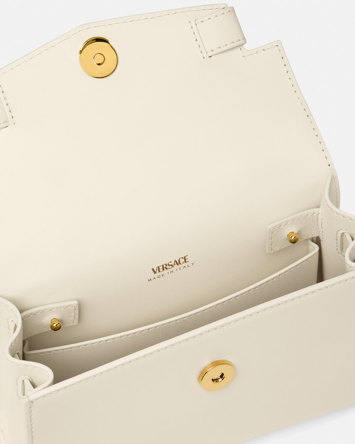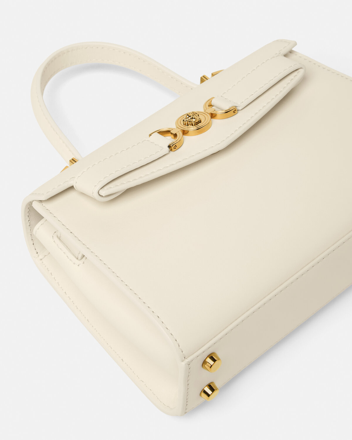 Small handbag, made of smooth grain plain leather with decorative details, decorated with Medusa '95 hardware accessories-the iconic brand element that first appeared in 1995 series. The style adopts the top handle design, the flip magnetic buckle is closed, and the detachable diagonal shoulder strap is equipped.