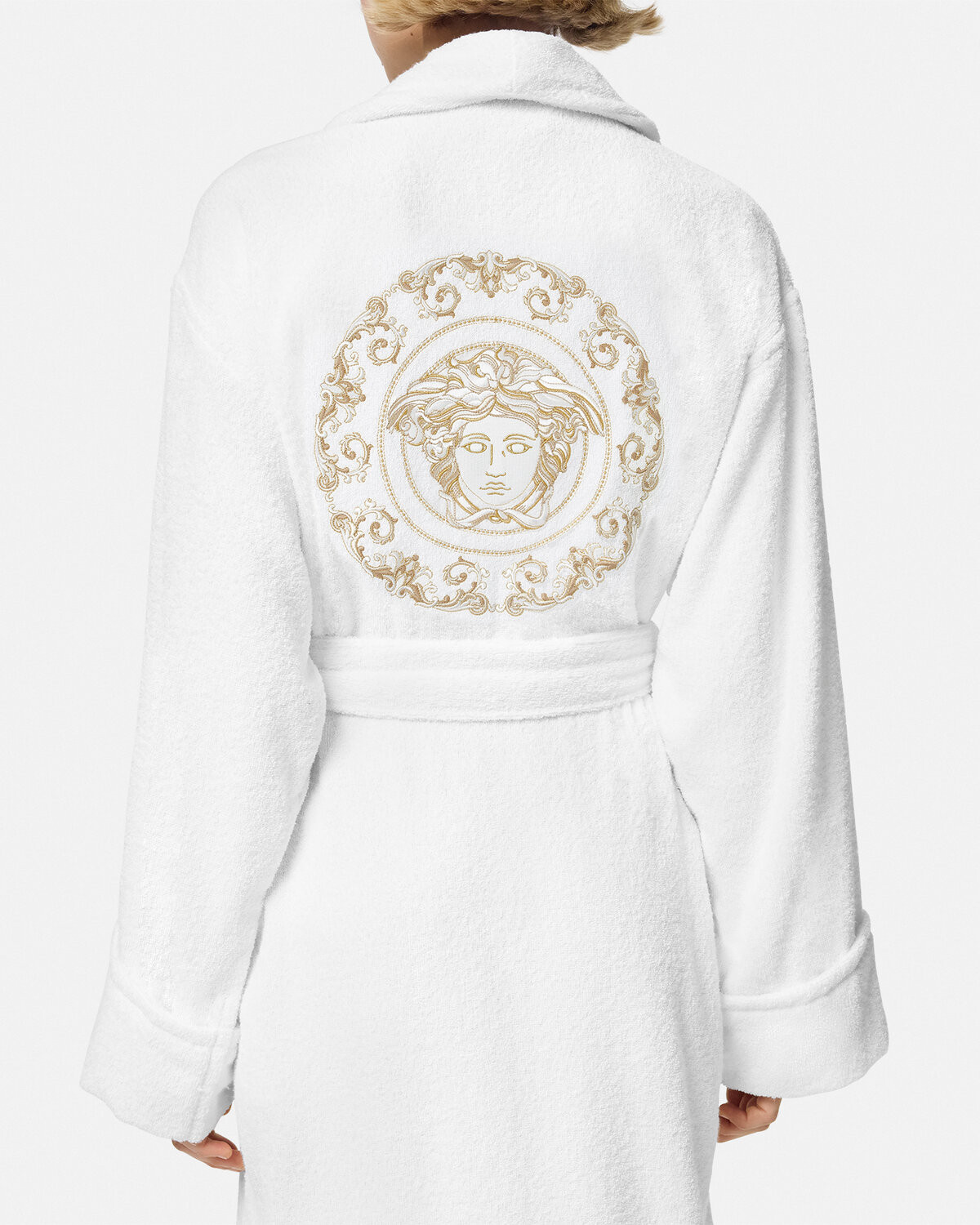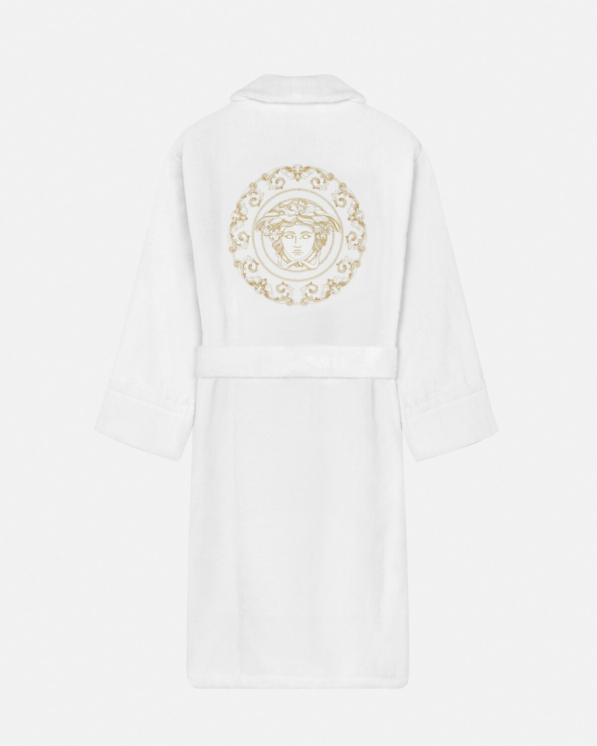 This bathrobe is made of soft cotton and linen towel fabric, and Medusa Gala embroidery is decorated on the chest and back.