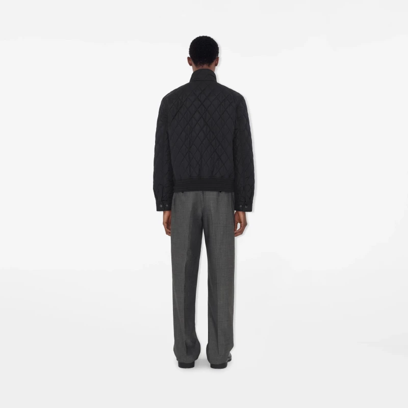 This quilted jacket is crafted from lightweight, protective nylon, featuring a corduroy collar and a Burberry check cotton twill lining. It offers a relaxed fit, with a jacquard knit logo detail at the hem and a B-shaped zipper pull.