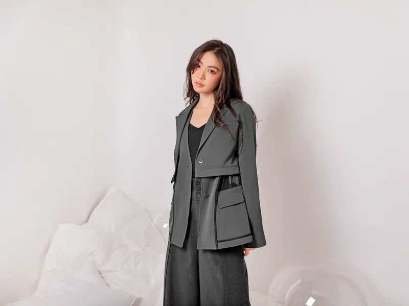 Short long-sleeved suit jacket with Cogan yarn vest-26SDJ045C
